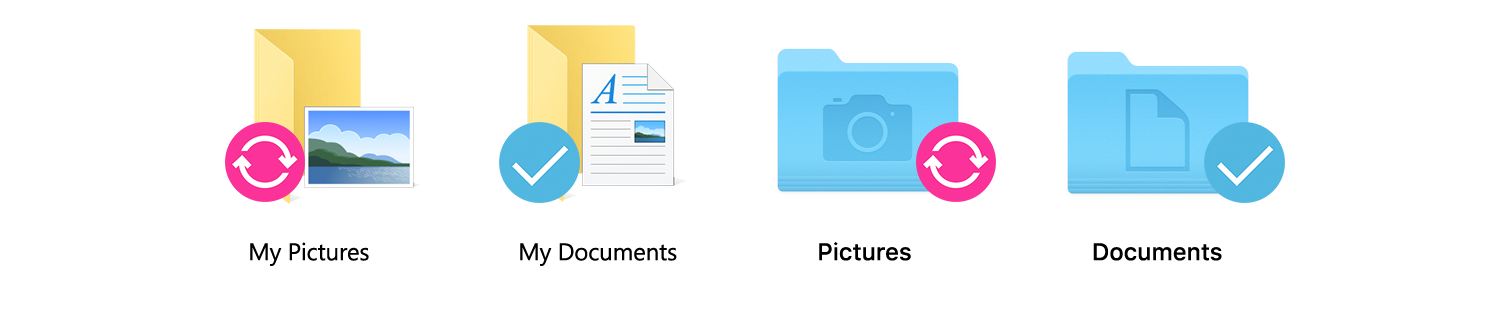 You can actively synchronize any folder on your computer with any folder in odrive. A custom sync folder works like the odrive folder. Changes automatically synchronize in both directions. Badges and placeholder files are both supported.
